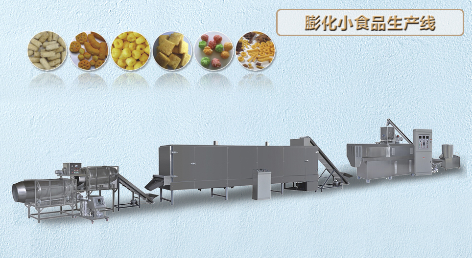 膨化主机主要是把小麦粉、大米粉、玉米粉等各类食用粉类加工成各种形状各异,口味独特的食品...
